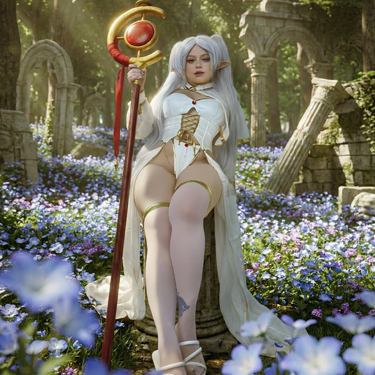 Frieren Derivative Sexy Lingerie Set Top Skirt and Cape with Panty and Thigh-high Stockings
